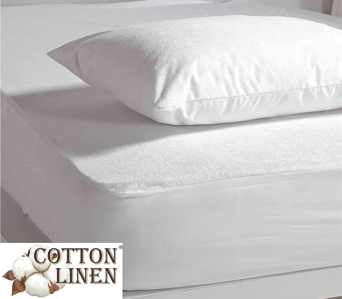 Πάνω μέρος ύφασμα πετσέτα: 80% βαμβάκι -20% πολυέστερ Κάτω μέρος επένδυση 100% αδιάβροχη διαπνέουσα ελαστική πολυουρεθάνη (PU) Περιμετρική φάσα 100% πολυεστερ Χαρακτηριστικά – προστασία Αδιάβροχο επίστρωμα, μπλοκάρει όλα τα υγρά, όπως αίμα, ούρα, ιδρώτας κ.ά. και προστατεύει το στρώμα Το επίστρωμα έχει πόρους και αναπνέει Έχει ελαστικότητα, εφαρμόζει τέλεια χάρη στα ενσωματωμένα περιφερειακά λάστιχα Είναι αντιβακτηριδιακό και αντιαλλεργικό Δεν λεκιάζει και προστατεύει από οσμές Προστατεύει από ζωύφια Εφαρμόζει σταθερά στο κρεβάτι, δεν τσαλακώνει και δεν κάνει ζάρες Πλένεται Διαθέτει Ευρωπαϊκό Πιστοποιητικό ISO Είναι 80% cotton – 20% polyester Ευρύ πεδίο εφαρμογών Ιδανικό για άτομα σε κατάκλιση Ιδανικό για παιδιά που βρέχουν το κρεβάτι τους Ιδανικό για άτομα που ιδρώνουν πολύ το βράδυ Ιδανικό για άτομα με αλλεργίες Χρησιμοποιείται σε νοσοκομεία, στο σπίτι, σε γηροκομεία, σε παιδικούς σταθμούς Χρησιμοποιείται είτε σαν σκέτο σεντόνι είτε σαν προστατευτικό κάτω από το σεντόνι Οδηγίες πλυσίματος Το επίστρωμα πλένεται στο πλυντήριο στους 60 βαθμούς Μη χρησιμοποιείται λευκαντικά ή άλλα χημικά Μη το σιδερώνετε.
