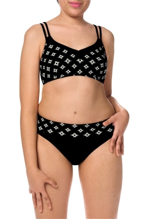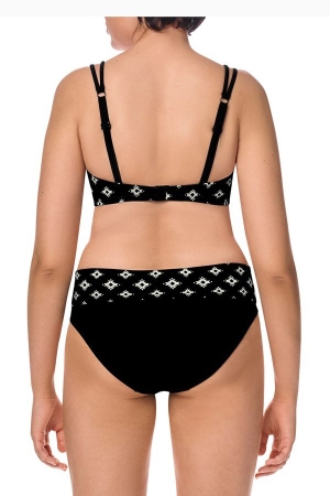 • Υπέροχο μπικίνι σε μαύρο χρώμα με έθνικ λευκό μοτίβο και λαιμόκοψη V για μια όμορφη εμφάνιση.