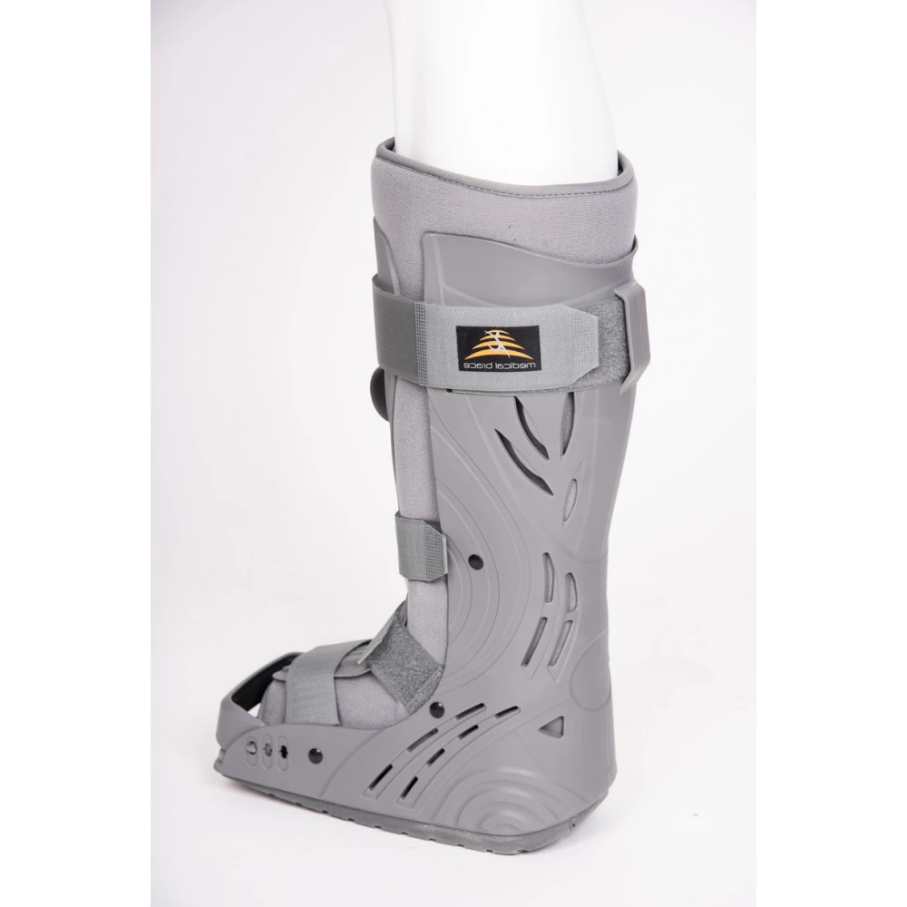 Ο νάρθηκας είναι κατασκευασμένος με πλαστικό σκελετό περιμετρικά της ποδοκνημικής και πρόσθιο panel για αποτελεσματική υποστήριξη. Διαθέτει ειδικό προσθαφαιρούμενο πλαστικό πλαίσιο στο πρόσθιο τμήμα της μπότας για ρύθμιση του μεγέθους. Εξοπλίζεται με ιμάντες σταθεροποίησης με Velcro, καθώς και με βαλβίδα εισαγωγής και εξαγωγής αέρα και αντλία (PUMP) για ακριβή και ελεγχόμενη κατανομή της πίεσης.