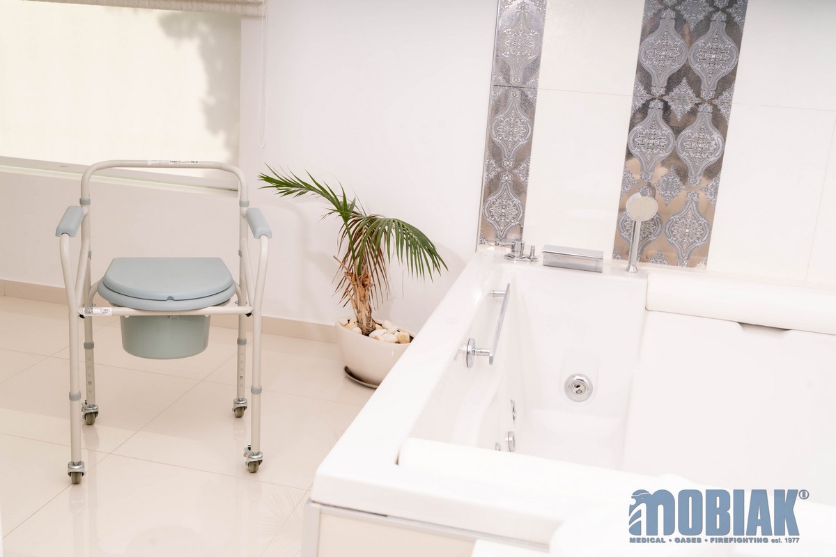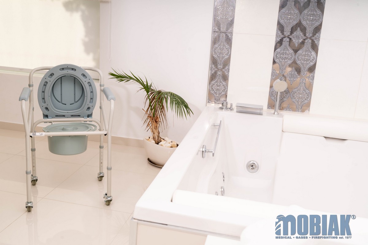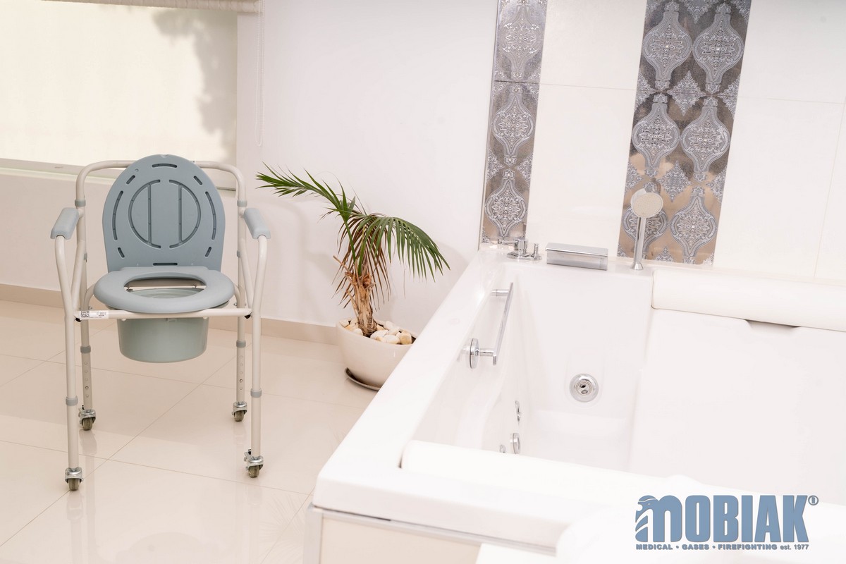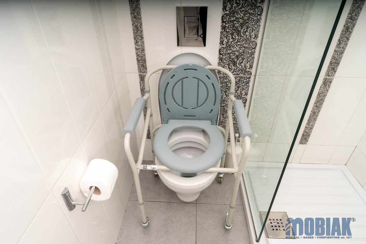 • Τοποθέτηση γύρω από την λεκάνη ως πλαίσιο στήριξης (ασφαλίζοντας τους τροχούς), προσφέροντας σταθερότητα στον χρήστη κατά την ανασήκωση από την λεκάνη.