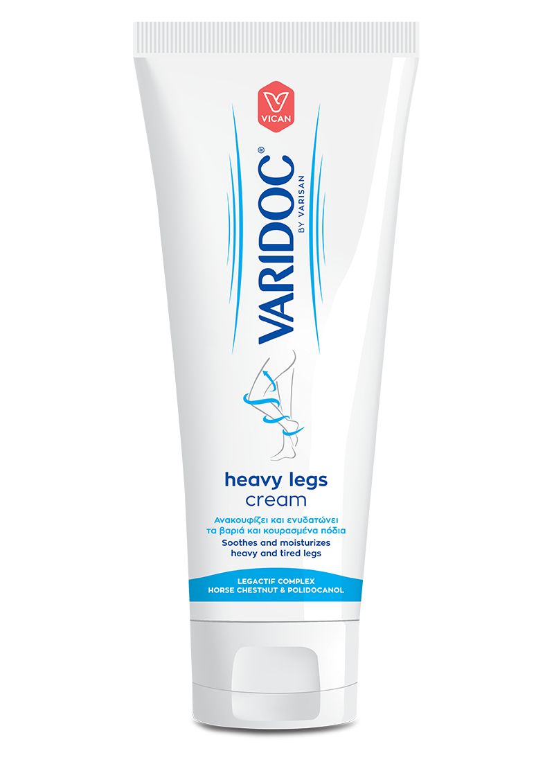 H Varidoc Heavy Legs Cream ενυδατώνει σε βάθος και ανακουφίζει τα βαριά και κουρασμένα πόδια από το πρήξιμο, τη δυσφορία και τον κνησμό που προκαλούν τα προβλήματα μικροκυκλοφορίας. Προσφέρει αίσθηση χαλάρωσης και ξεκούρασης καθ’ όλη τη διάρκεια της ημέρας. Περιέχει το καινοτόμο φυτικό δραστικό σύμπλεγμα LegΑctif και πολιδοκανόλη, ένα συστατικό γνωστό για τις αντικνησμικές του ιδιότητες.